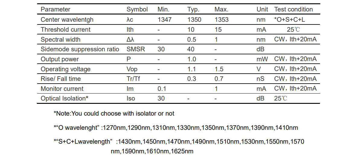 1350nm DFB CWDM 激光器组件