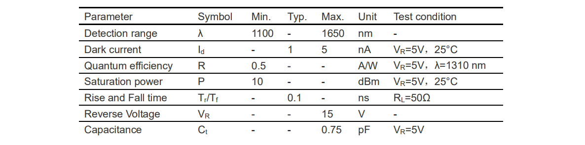 光电特性: