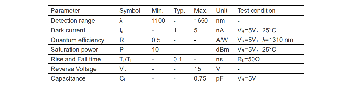光电特性: