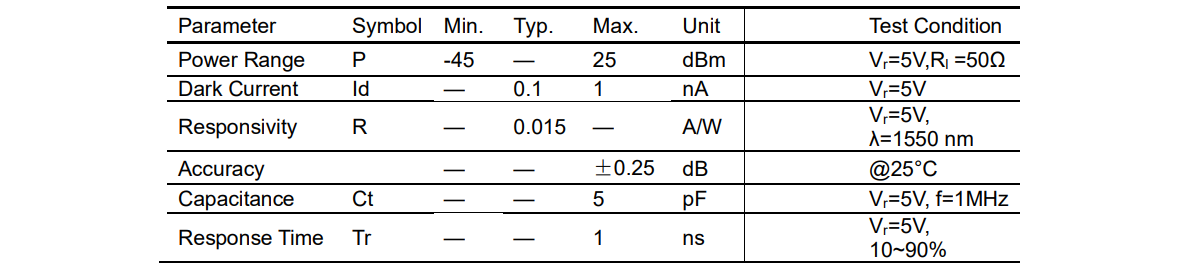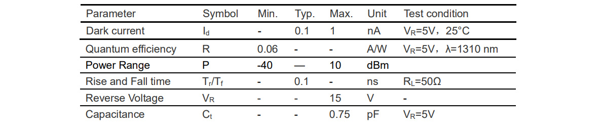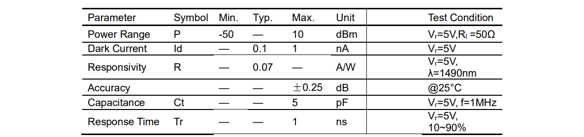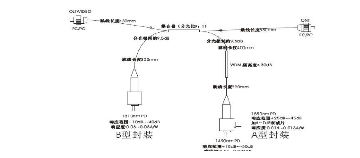 1310 突发式接收管为单个组件,1490 和 1550 接收为一个单纤双向组件;用户可选择